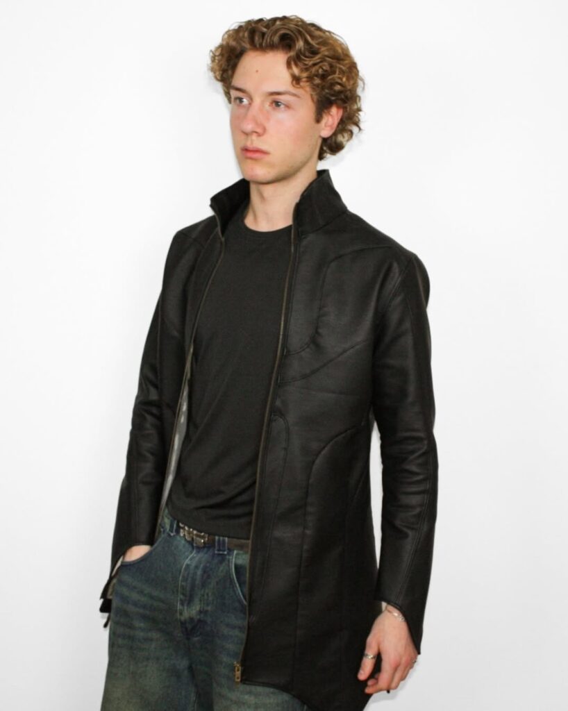 Another standout piece is the Puffer-Vest “S”, which demonstrates Julian’s skill in reimagining classic silhouettes with a contemporary twist. This vest combines functionality with high-fashion elements, reflecting his talent for blending practicality with artistic expression.